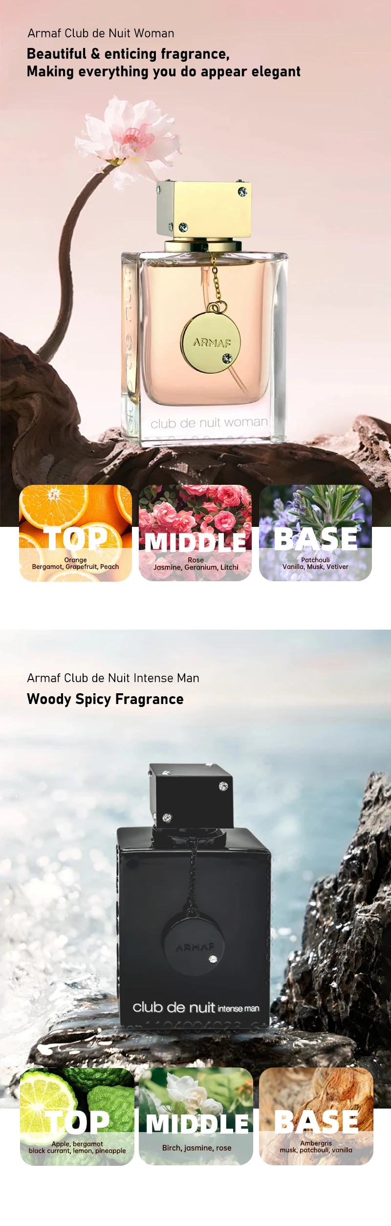 Middle notes: Rose, Jasmine, Geranium and Litchi