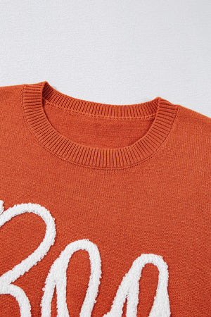 Apricot Halloween Boo Drop Shoulder Knit Sweater