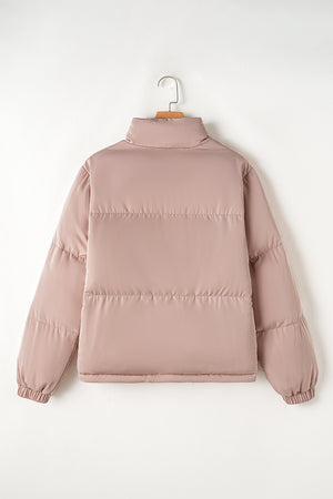 Apricot Pink Full Zipper Quilted Puffer Jacket