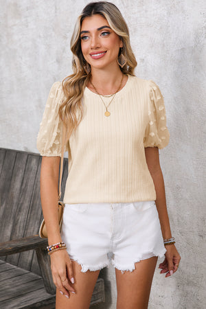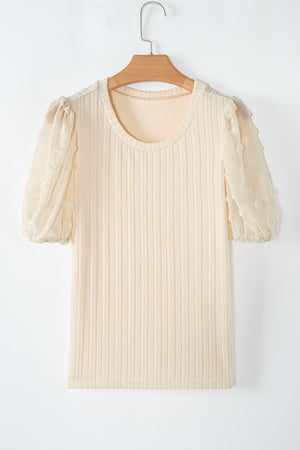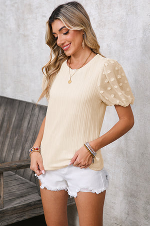 Apricot Swiss Dot Mesh Puff Sleeve Textured Top