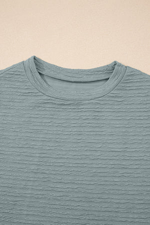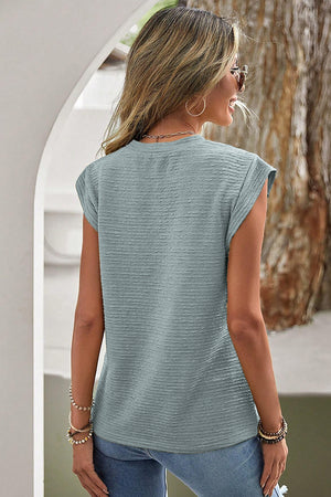 Beau Blue Casual Solid Color Textured Sleeveless Shirt