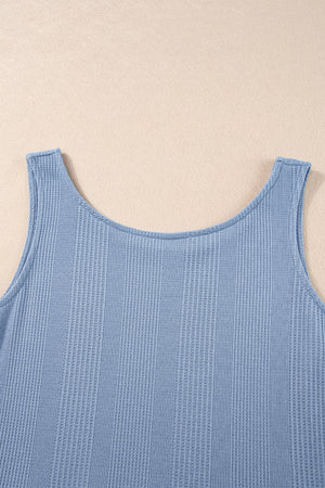 Beau Blue Solid Color Ribbed Ruffle Tank Top and Pants Set