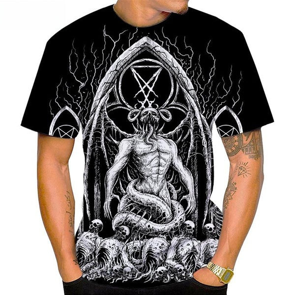 Dieses außergewöhnliche T-Shirt ist mehr als nur Kleidung – es ist ein Statement. Mit seinem auffälligen 3D-Druckdesign, das Teufels- und Satansmotive kunstvoll in Szene setzt, verkörpert es pure Ausdrucksstärke und urbanen Streetstyle.