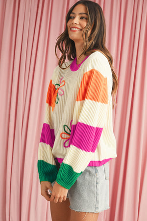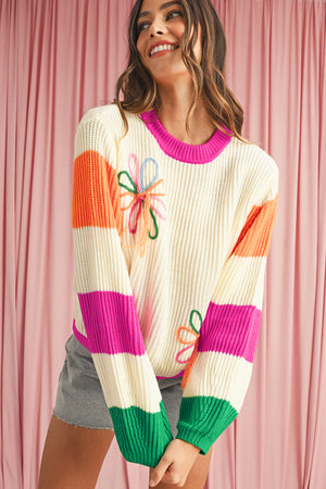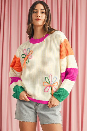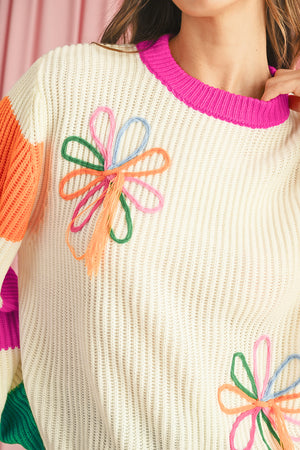 Beige Flower Colorblock Sweater – Feminin, stilvoll & charmant