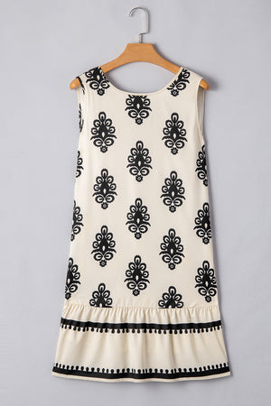 Beige Geometric Printed Sleeveless Hollowed Bowknot Back Mini Dress – Modern, verspielt & stilvoll elegant