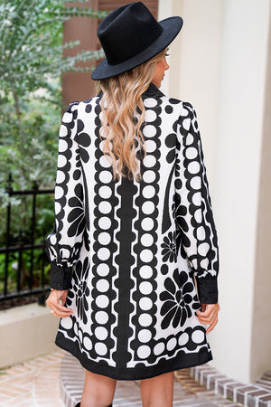 Mit dem Black Abstract Puff Sleeve Mini Dress erhältst du ein Kleidungsstück, das Kunst, Stil und Komfort harmonisch verbindet.