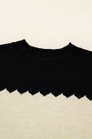 Black Colorblock Crew Neck Drop Shoulder Sweater