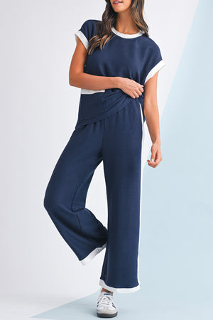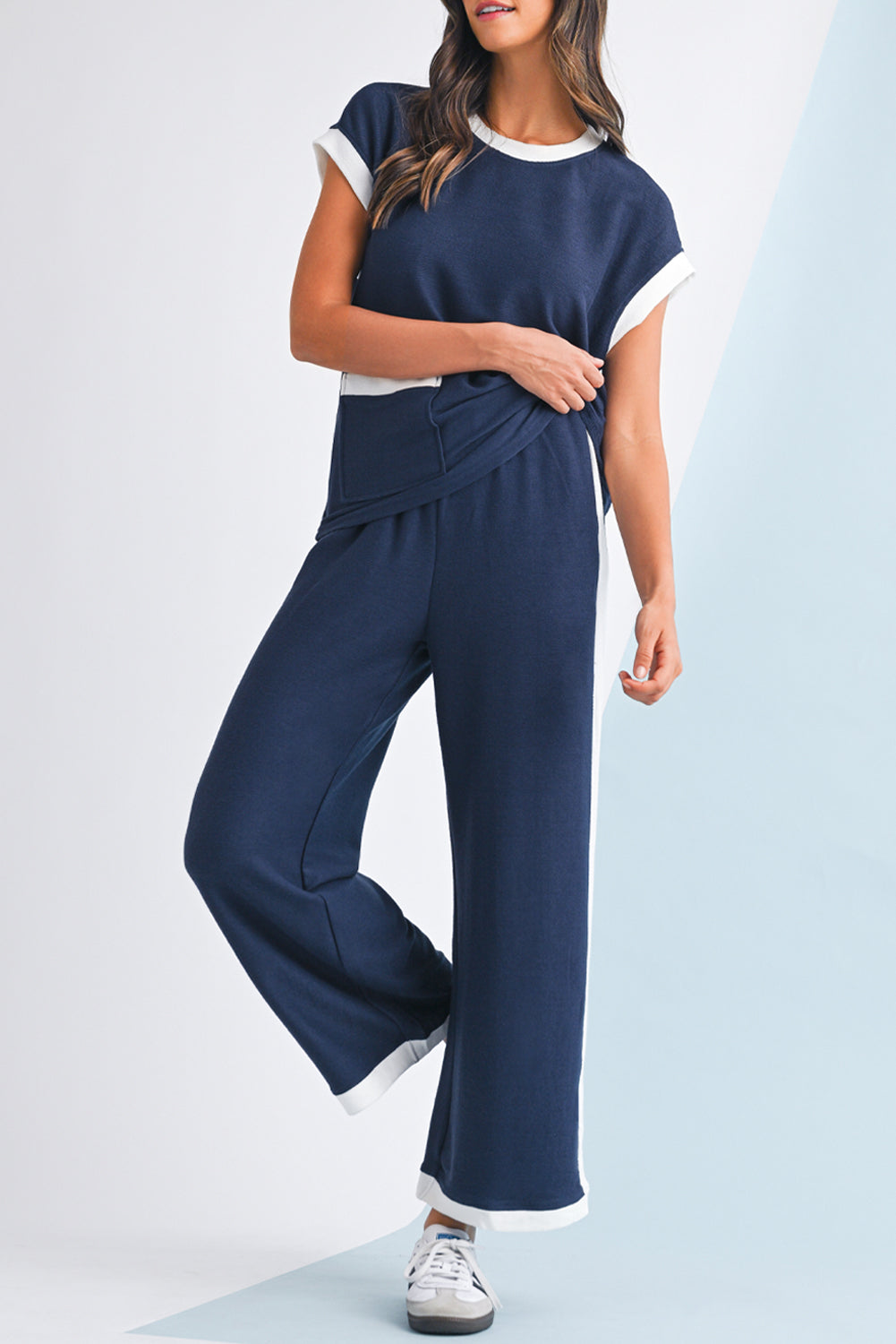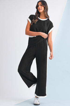 Black Contrast Trim Pocket T Shirt and Wide Leg Pants Set