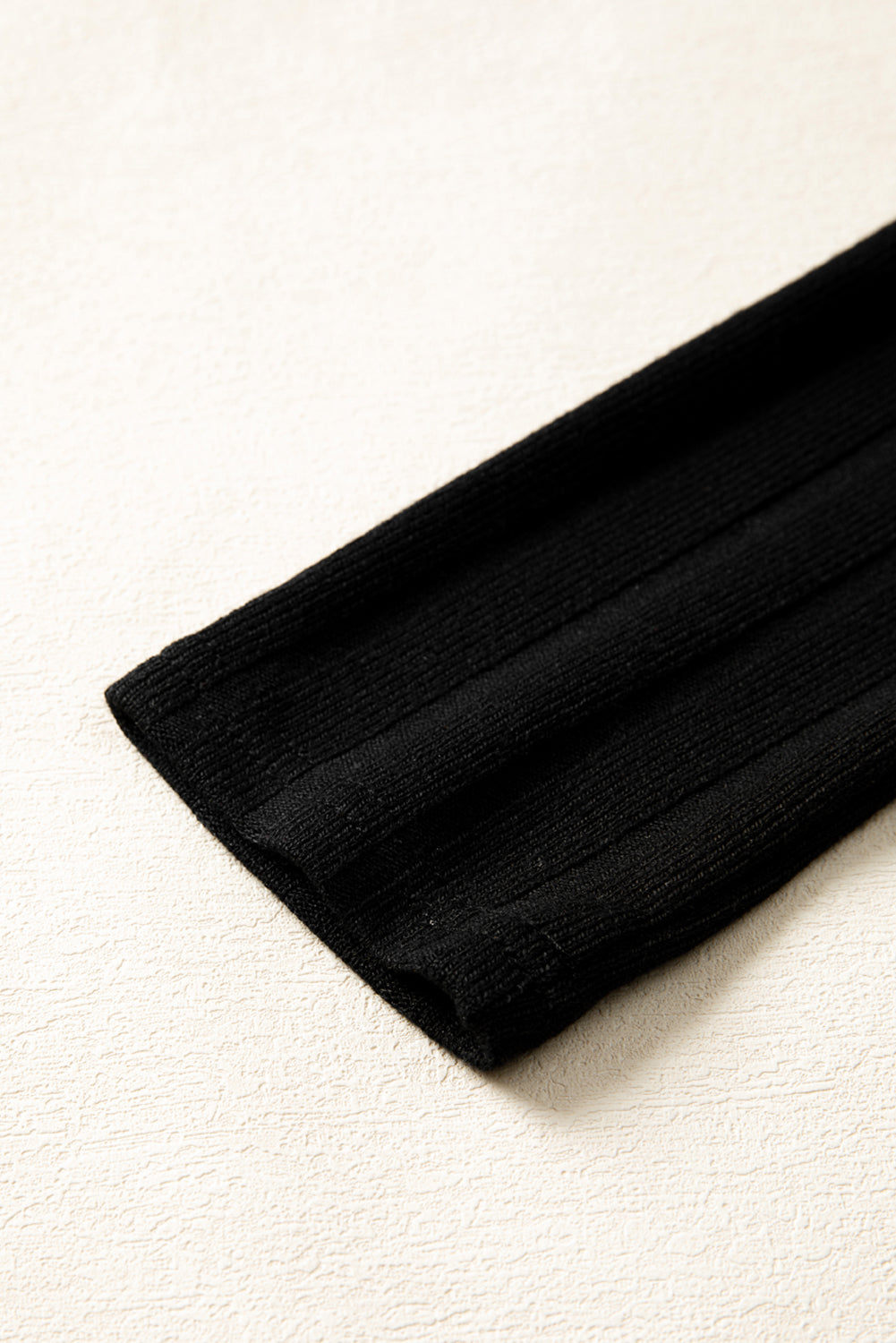 Heim Black Frilled Neck Ribbed Knit Patchwork Long Sleeve Mini Dress