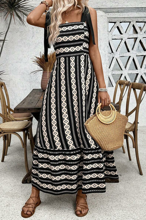 Heim Black Geometric Striped Knot Strap Maxi Dress