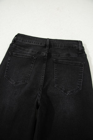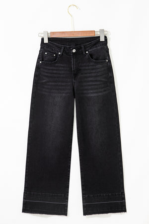 Black Raw Hem Straight Leg Loose High Waist Jeans