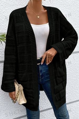 Black Solid Color Pocket Open Front Cardigan