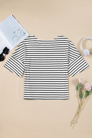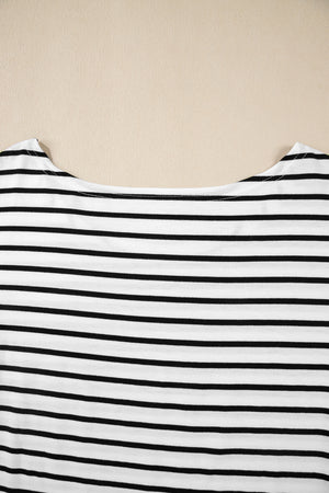 Black Stripe Half Sleeve Scoop Neck Loose Top