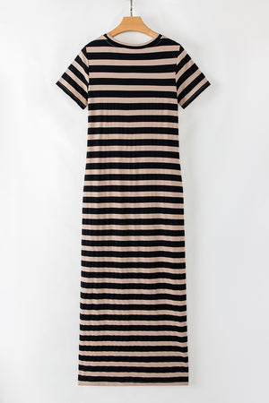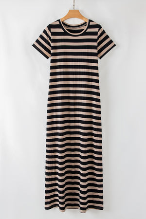 Black Striped Side Pockets T-Shirt Maxi Dress