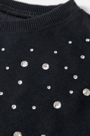 Heim Black Studded Embellished Drop Shoulder Ribbed Cuffs Sweatshirt