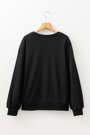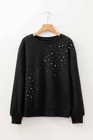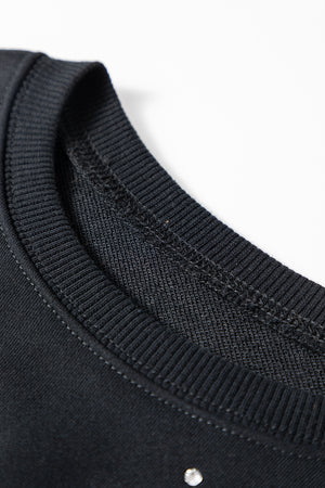 Black Studded Embellished Drop Shoulder Ribbed Cuffs Sweatshirt