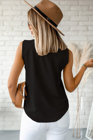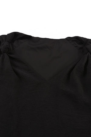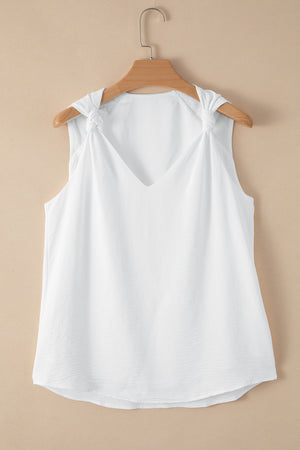 Black V Neck Knotted Shoulder Sleeveless Shirt