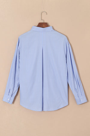 Blue Stripe Button Up Oversized Casual Shirt Shacket