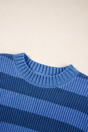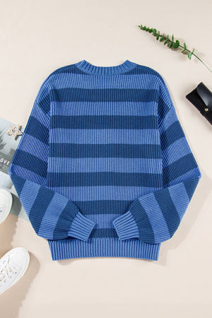 Heim Blue Striped Drop Shoulder Casual Sweater