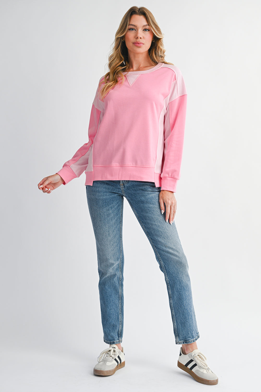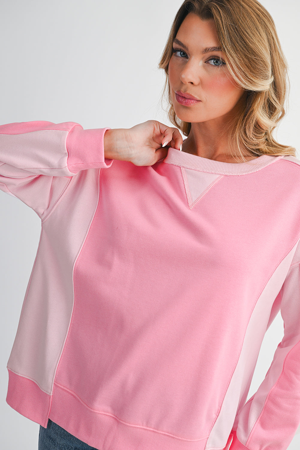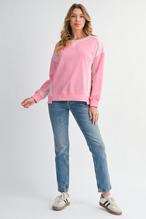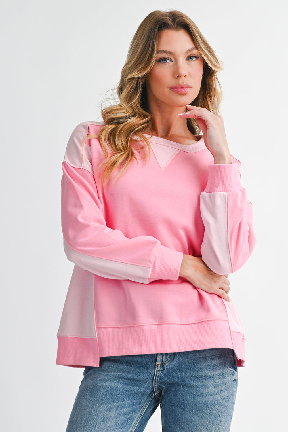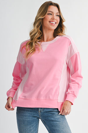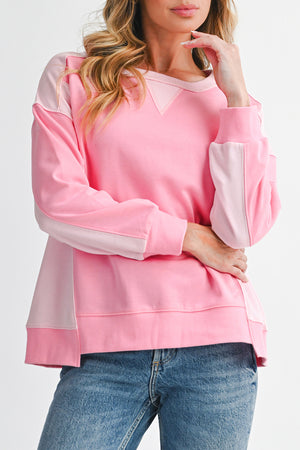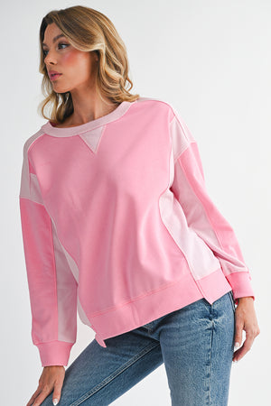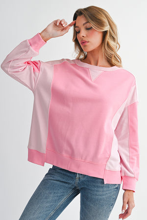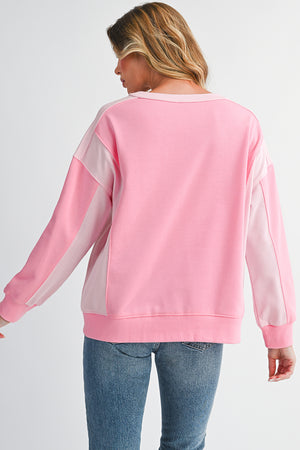 Bonbon Colorblock Patchwork Drop Shoulder Loose Sweatshirt