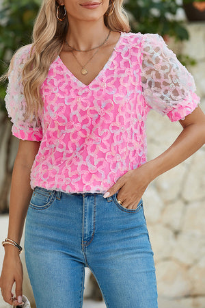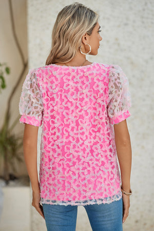 Bonbon Mesh Applique Puff Sleeve Blouse