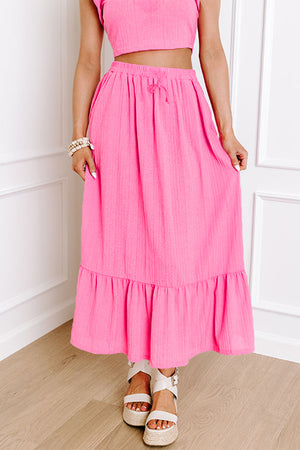 Bonbon Textured Ruffle Trim Crop Top and Drawstring Skirt Set