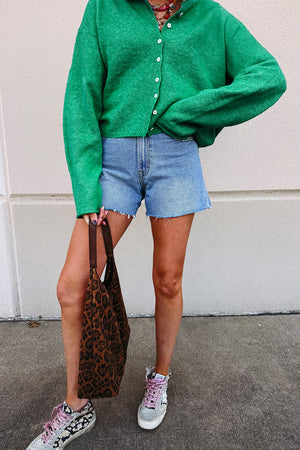 Bright Green Solid Color Button Drop Shoulder Knit Cardigan