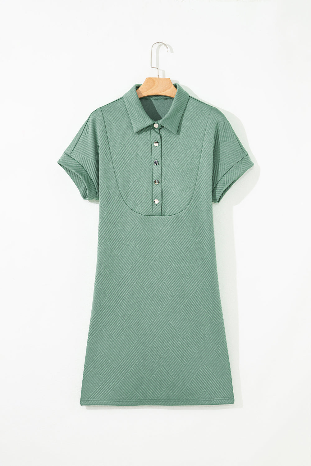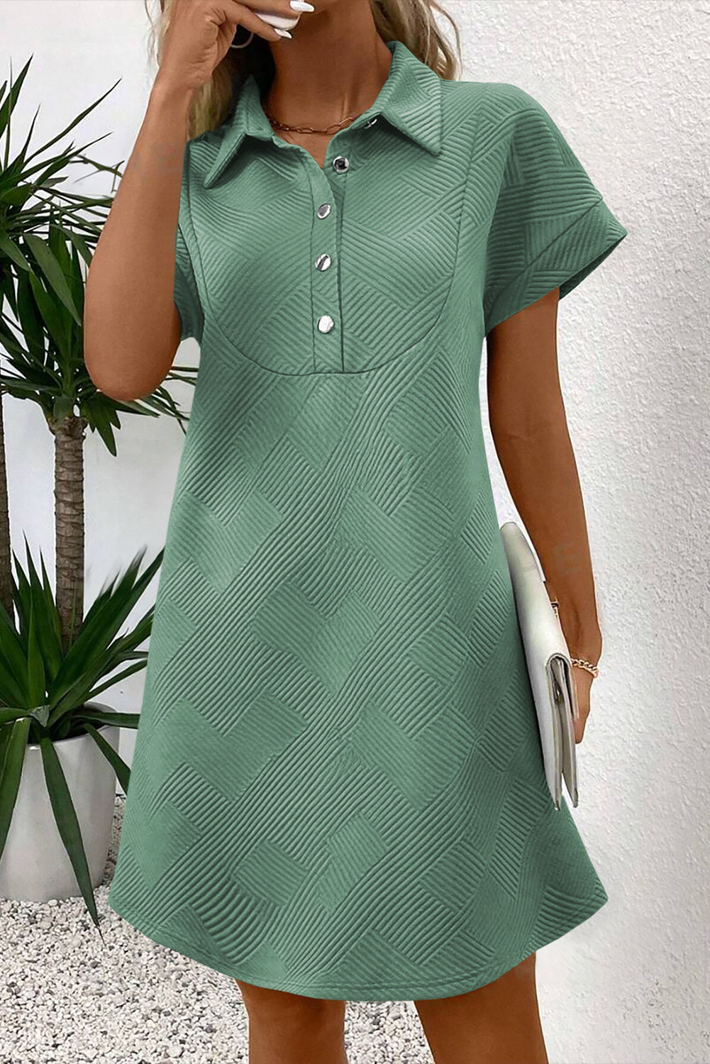 Der klassische Hemdkragen und die V-Knopfleiste verleihen dem Kleid einen edlen, strukturierten Look, der sowohl im Alltag als auch zu semi-formalen Anlässen begeistert.