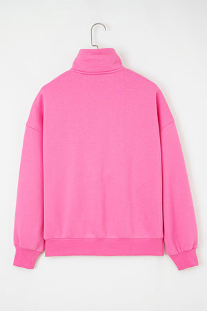 Bright Pink Half Button Collar Drop Shoulder Sweatshirt