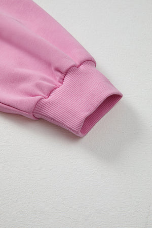 Bright Pink Lace Patchwork Raglan Sleeve Loose Fit Sweatshirt