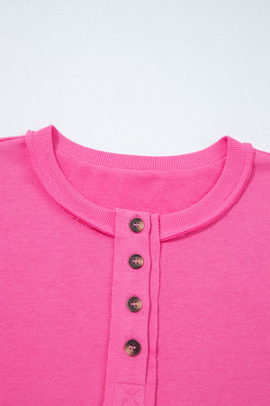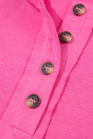 Bright Pink Raw Edge Henley Pullover and Jogger Pants Set