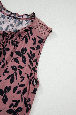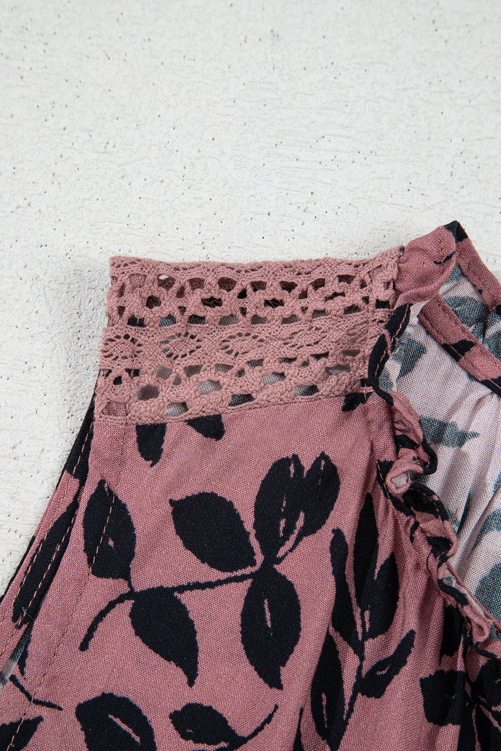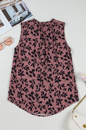Hanetes Select Damen Brown Floral Print Tie Neck Sleeveless Top