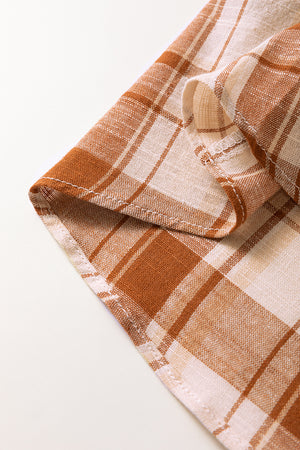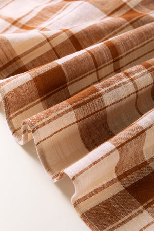 Brown Plaid Print Side Pockets Frill Babydoll Mini Dress