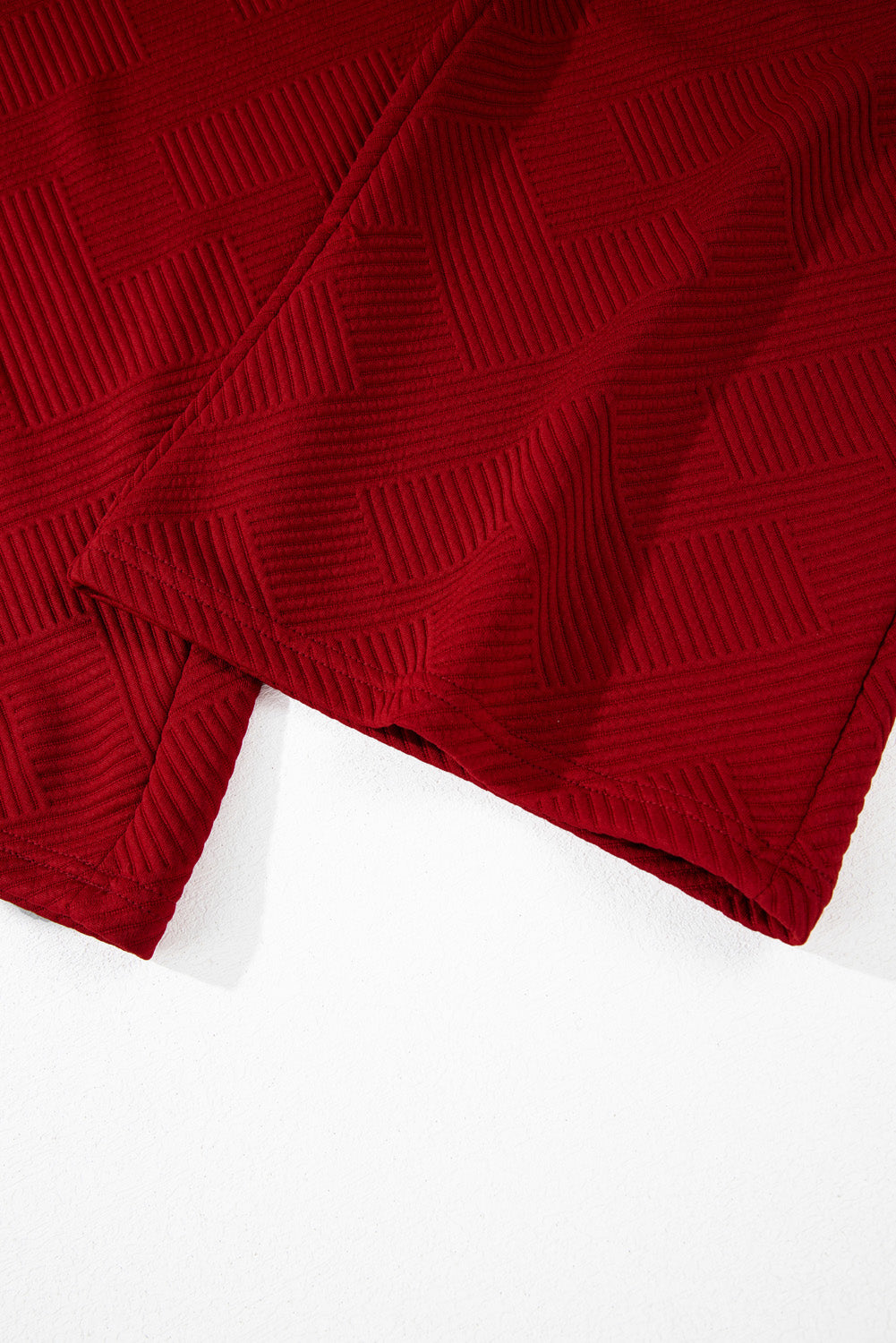 Das strukturierte Stoffdesign verleiht dem schlichten Look eine edle Textur und optische Tiefe, während der Rundhalsausschnitt und die weite Passform eine moderne Silhouette schaffen.