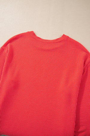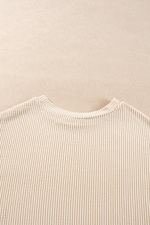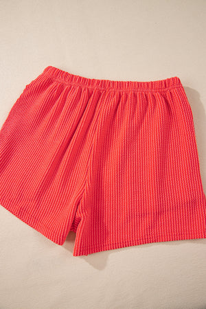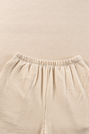Chestnut Corded Long Sleeve Top and High Waist Shorts Set