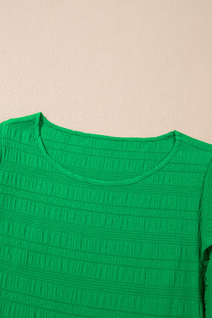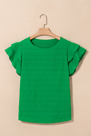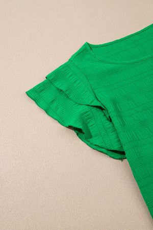 Dark Green Ruffle Sleeve Textured Smocked Blouse