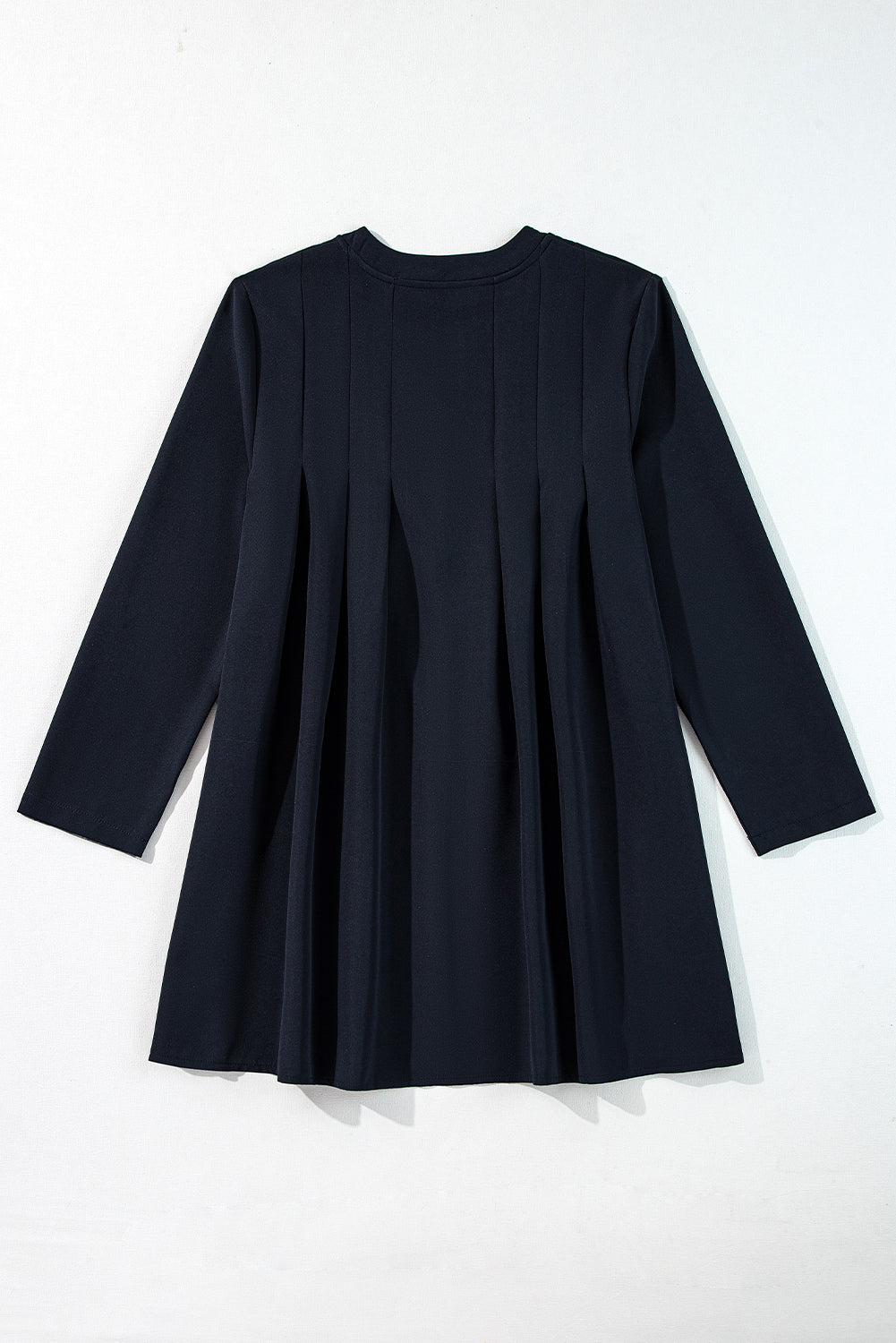 Mit dem Dirty Blue Plain Pleated Short Dress trägst du ein Kleid, das Eleganz, Komfort und Ausdruckskraft vereint.