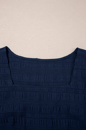 Dirty Blue Textured Ruffle Top and Shirred High Waist Shorts Set