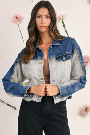 Dusk Blue Patchwork Flap Detail Distress Denim Jacket