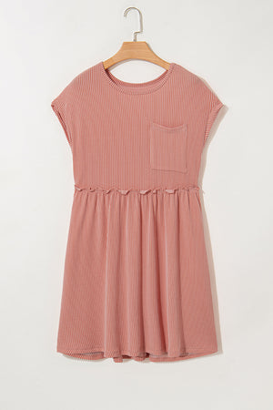 Dusty Pink Textured Patched Pocket Frilly Mini Dress