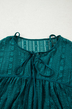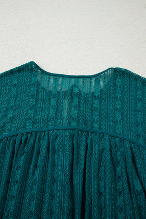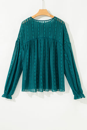 Evergreen Sheer Lace Balloon Sleeve Babydoll Blouse