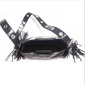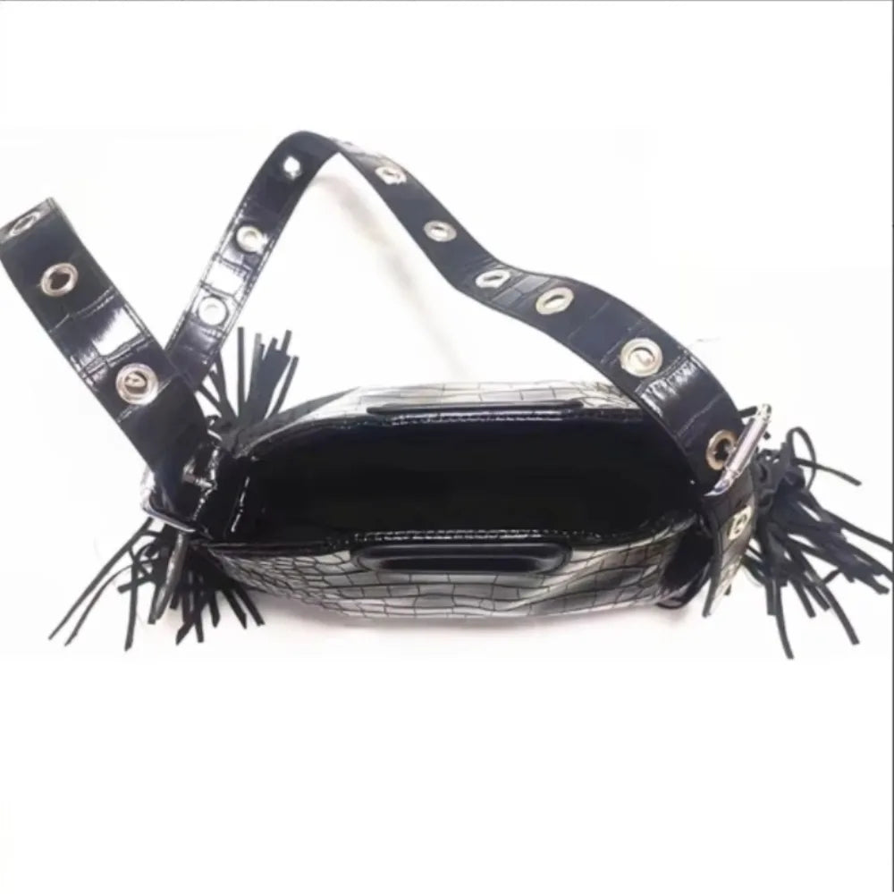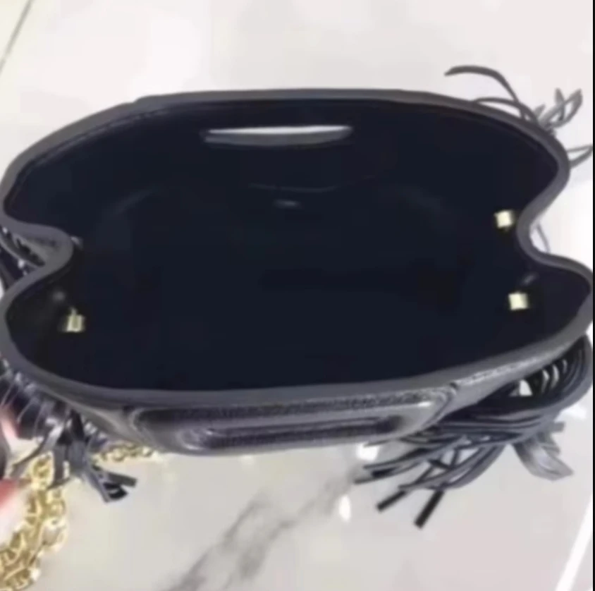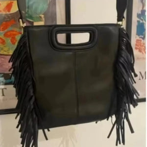 Hanetes Select „Tassel Élégance Bag“ – Schwarze Schultertasche aus weichem Echtleder mit Fransen – Stilvolle Crossbody & Handtasche für Damen