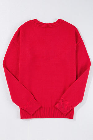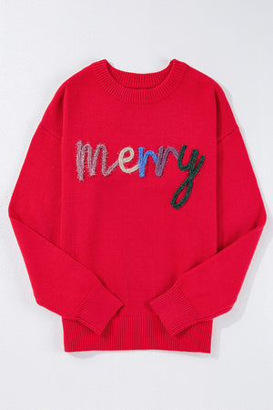 Fiery Red Tinsel Merry Letter Drop Shoulder Baggy Sweater