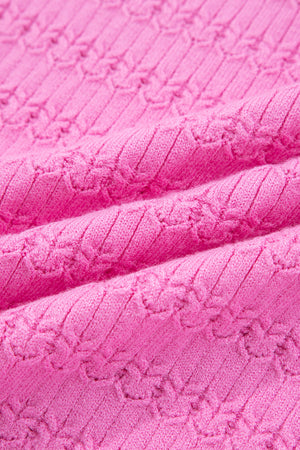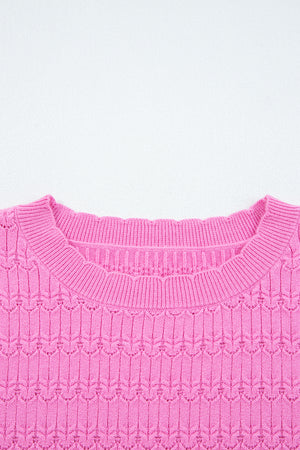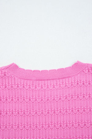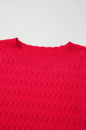 Fiery Red Trendy Pattern Knit Ribbed Cuffs Crew Neck Sweater