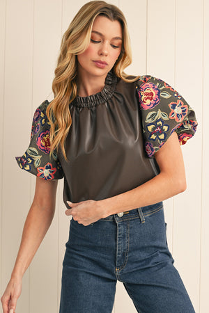 Floral Puff Sleeve Boho Frill Neck Blouse