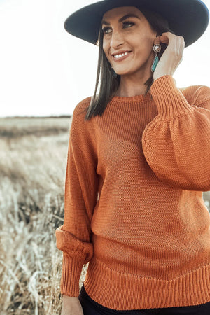 Gold Flame Solid Color Ribbed Trim Drop Shoulder Sweater