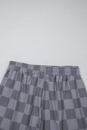 Heim Gray Checkered V Neck Tee and Drawstring Shorts Pajama Set