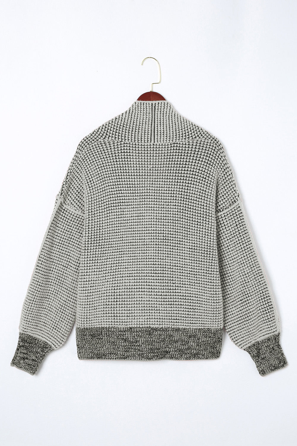 Gray Chunky Knit Pockets Drop Sleeve Cardigan