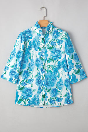 Das Green Floral Print Stand Neck Puff Sleeve Shirt bringt Natur und Stil perfekt zusammen. Ein elegantes, aber dennoch verspieltes Stück, das deine Garderobe mit einem frischen, femininen Touch bereichert.