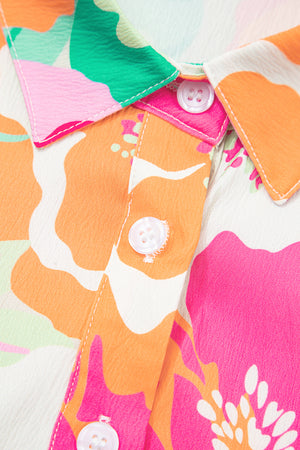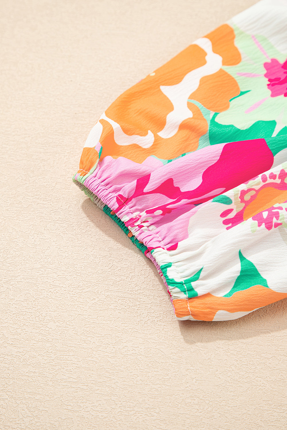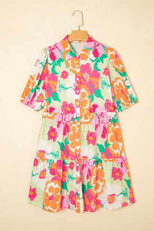 Green Floral Puff Sleeve Buttoned Babydoll Dress